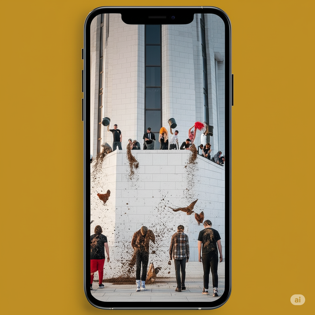 The process was methodical. Deliberate. We started with the building itself: those pristine neoclassical lines, the weight of limestone and authority. But then came the human element. The contrast. Young figures below, their digital-age confidence literally muddied. Above them, the ramparts—precisely fifty feet, we specified—occupied by citizens wielding the most ancient forms of protest.